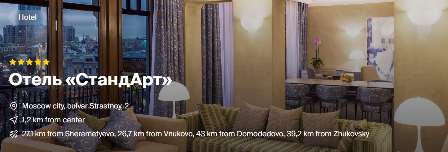 ด้วยทำเลที่สะดวก ดีไซน์โดดเด่น และสิ่งอำนวยความสะดวกครบครัน StandArt Hotel Moscow 5 ดาว จึงเป็นตัวเลือกที่เหมาะอย่างยิ่งสำหรับผู้ที่มองหาโรงแรมหรูสไตล์ร่วมสมัย ใจกลางกรุงมอสโก